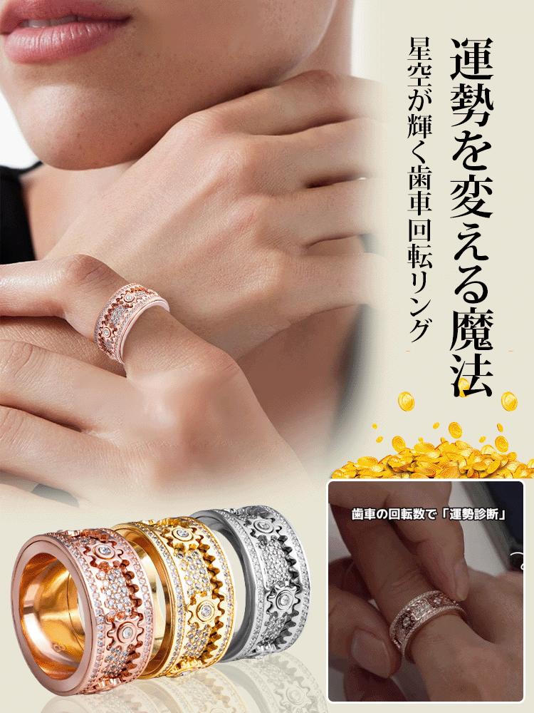 【開運グッズ】歯車モチーフのキラキラ回転リング