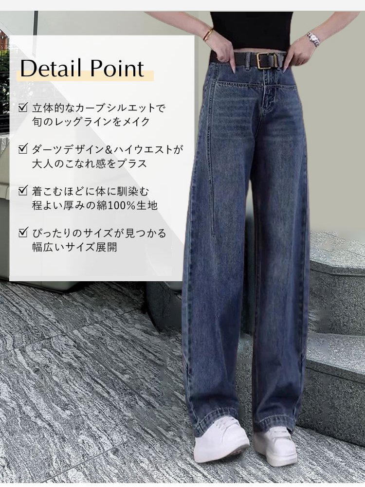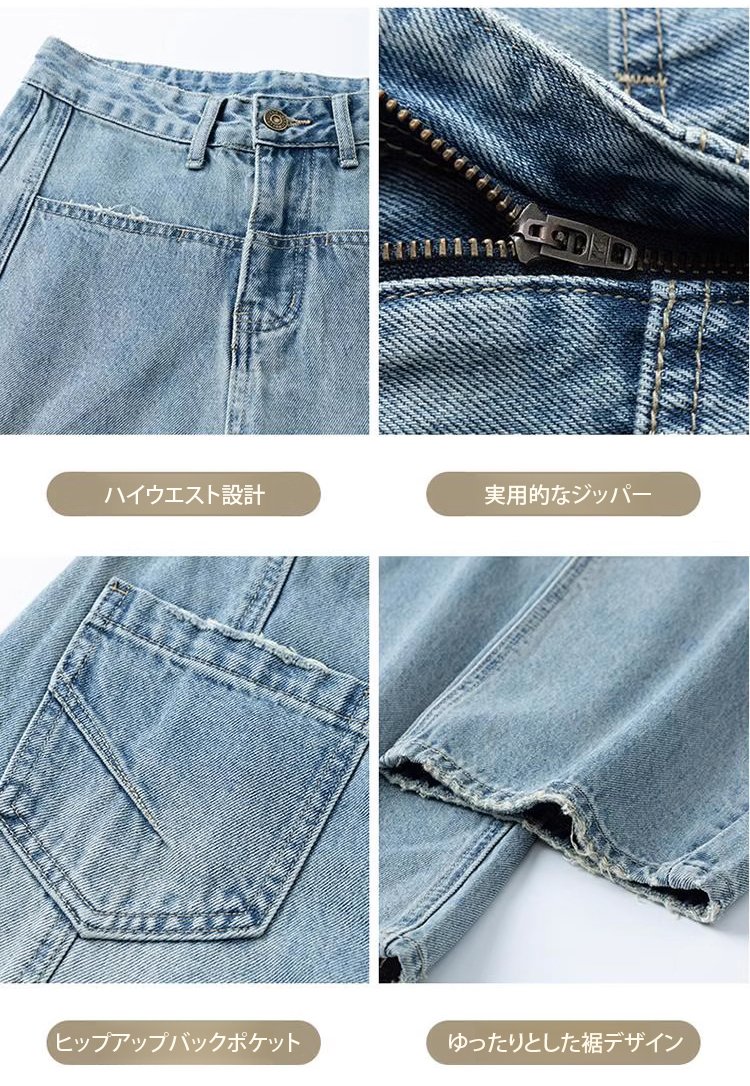 ハイウエストレトロワイドデニムパンツ