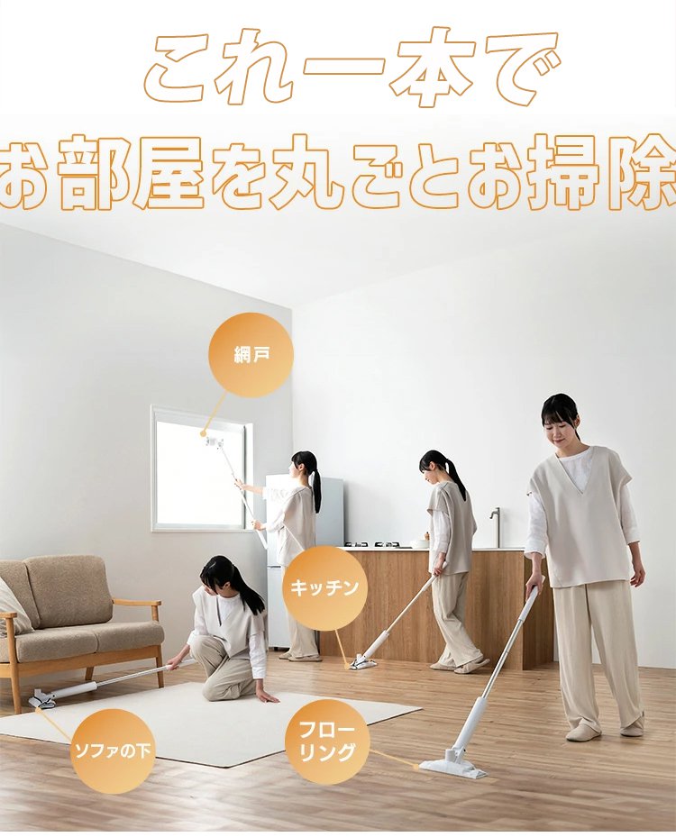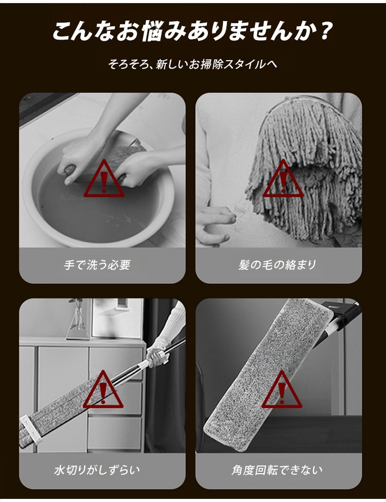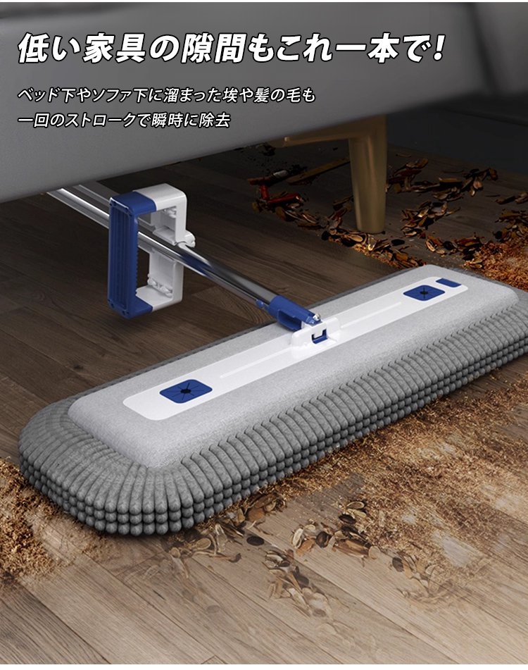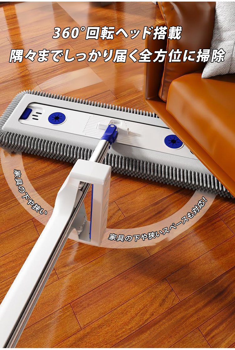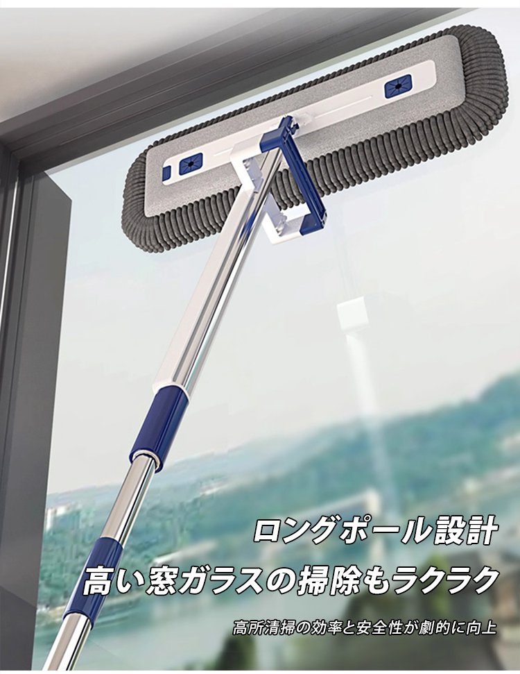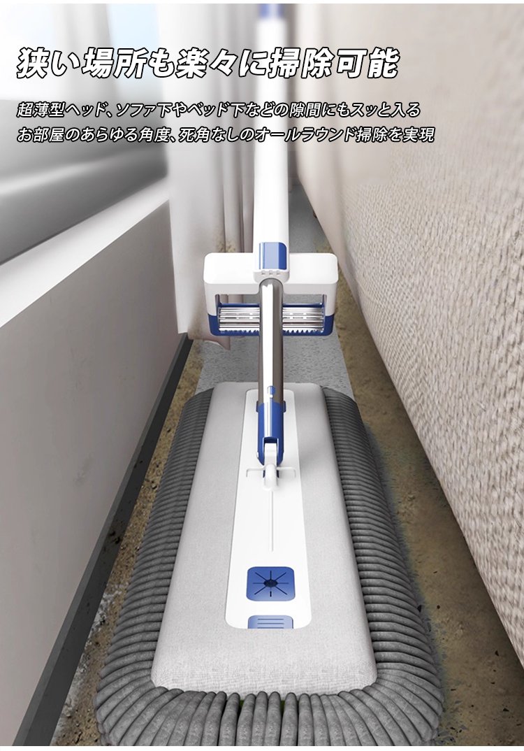 「掃除効率300%アップ」伸縮式自動洗浄シェニールモップ