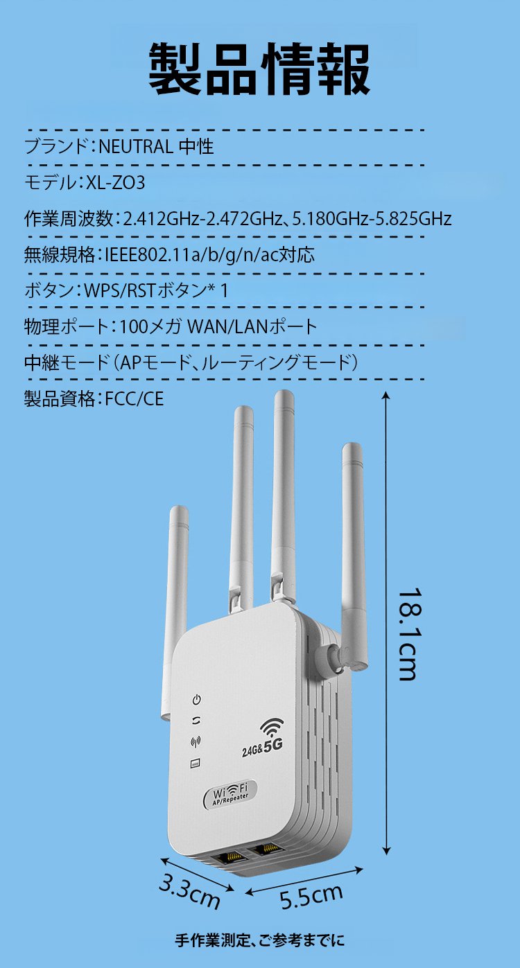 5GデュアルバンドWiFi中継器
