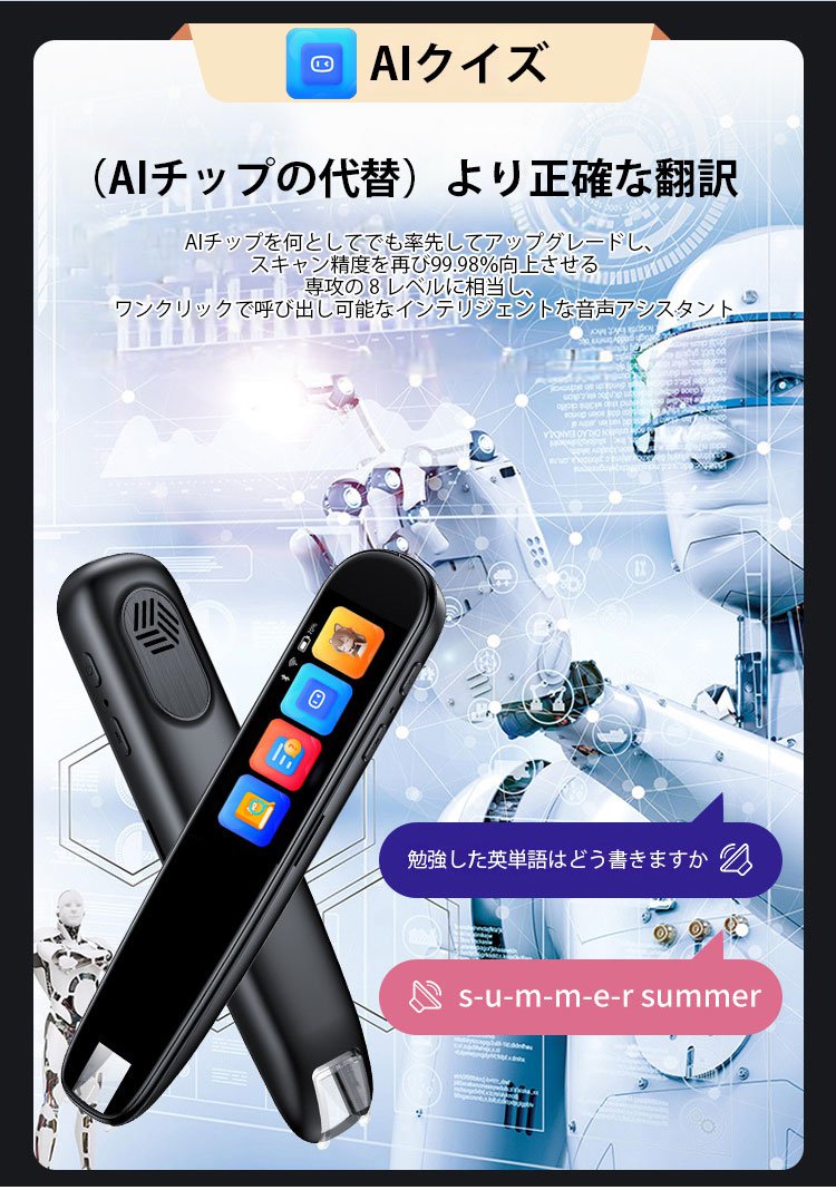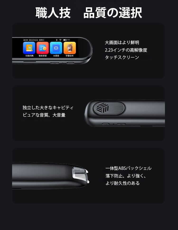 革命的なスキャンペンの登場です!116言語に対応しています!言語の壁はもはや問題ではありません!本、看板、文書など、どんなテキストでもスキャンするだけで、選んだ言語で朗読されます。スキャン翻訳、辞書、写真翻訳、さらにはリアルタイムのバイリンガル翻訳まで可能です!!