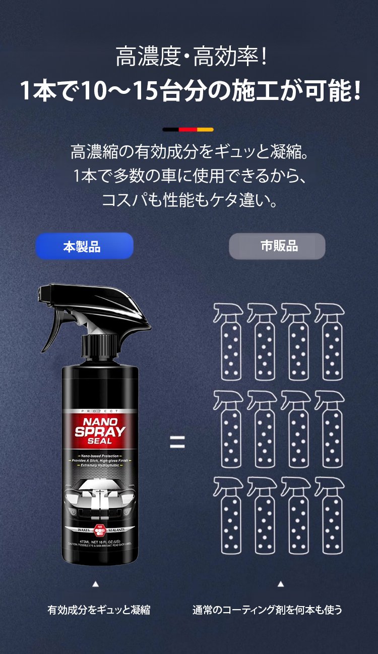 スプレーして拭くだけで簡単にセルフメンテナンスでき、時間とお金を節約し、専門的な設備は不要です、高額な自動車修理の費用をかけずにワックスメンテナンスし、今後10年間の塗装費用を削減します。