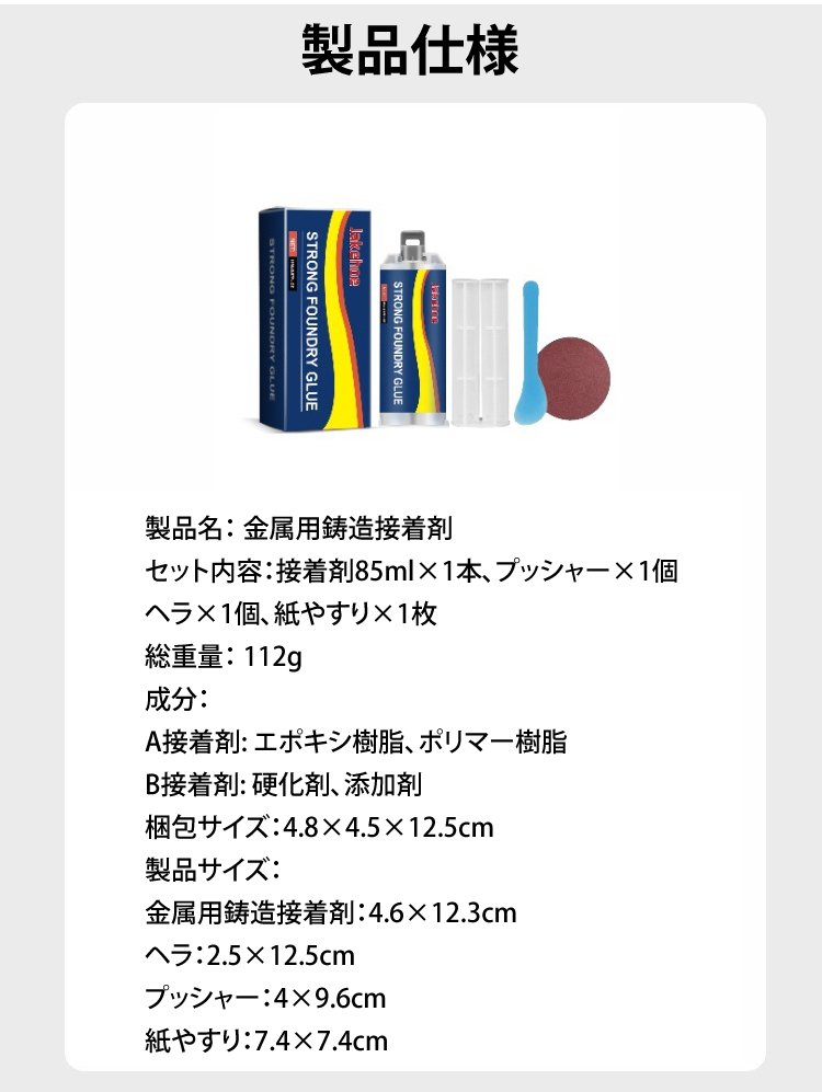 【電気溶接よりも頑丈】業務用金属接着剤セット