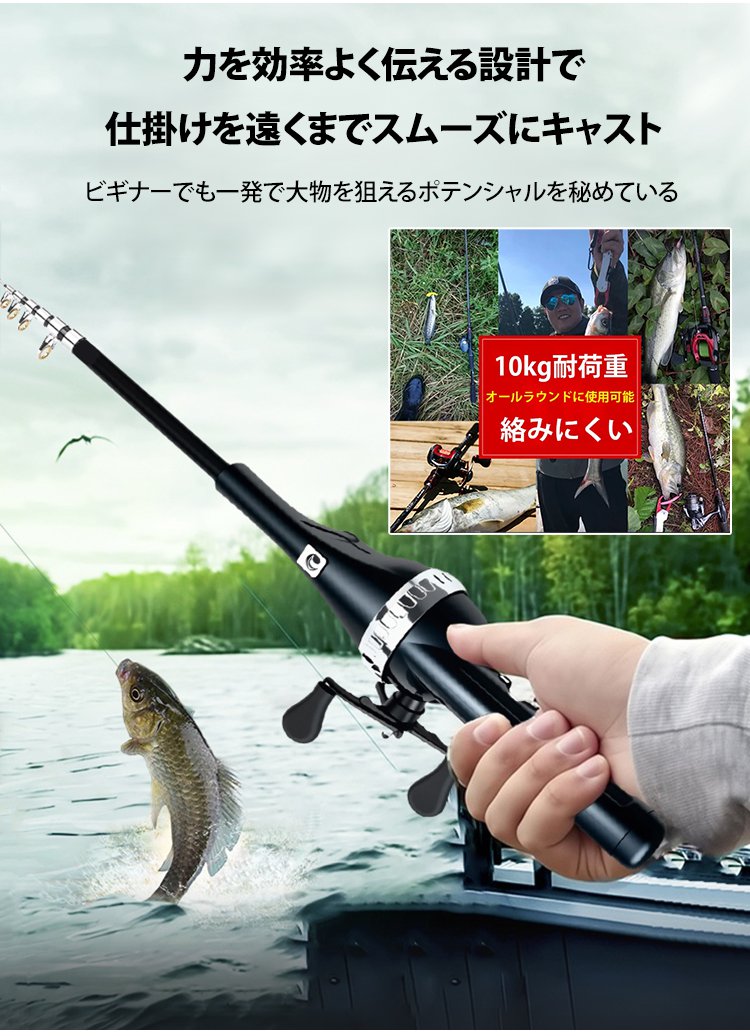 【21点セット】伸縮式折りたたみ釣り竿、釣りをもっと気軽に。組立0秒の次世代ロッド!